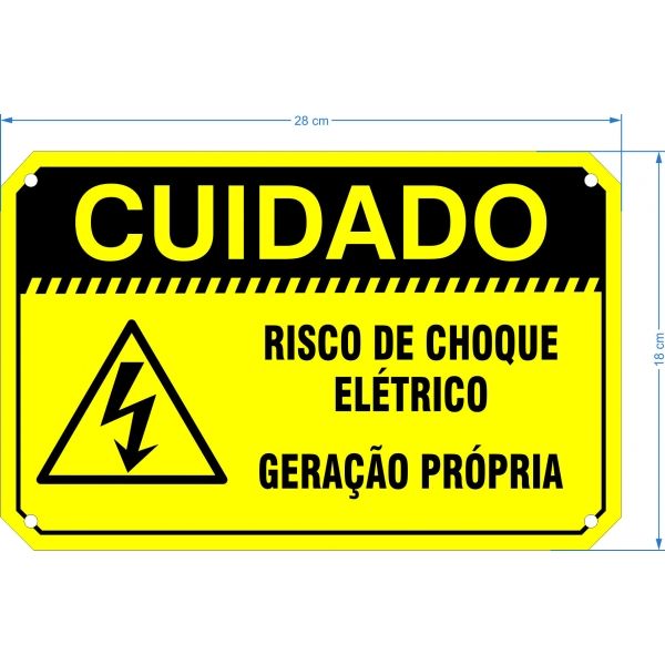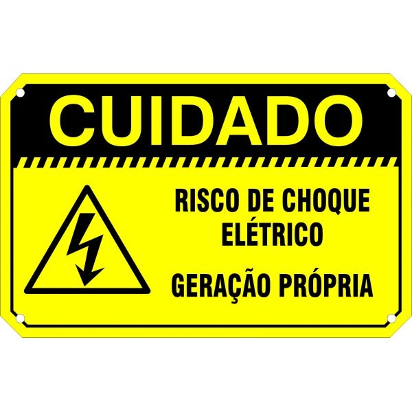 Com frase "CUIDADO - RISCO DE CHOQUE ELÉTRICO - GERAÇÃO PRÓPRIA"